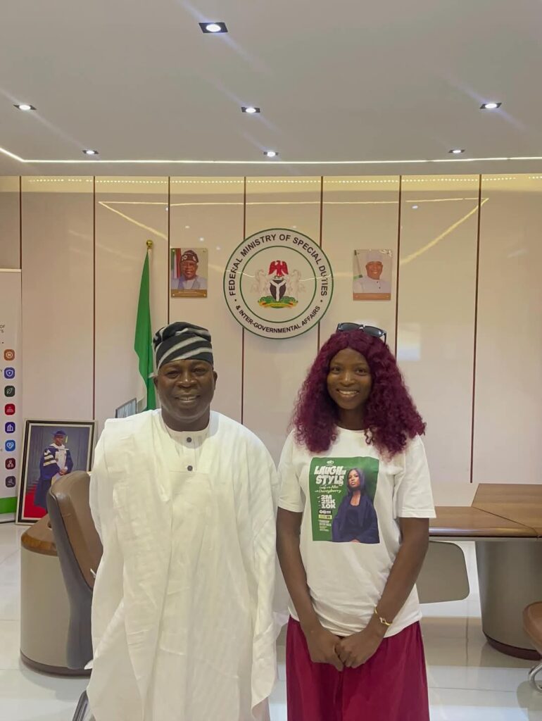 The Honourable Minister of Special Duties and Inter-Governmental Affairs, Hon. Zaphaniah Jisalo, has once again thrown his full support behind one of FCT’s shining stars, Mc Dorcyberry, the Gbagyi queen of comedy!