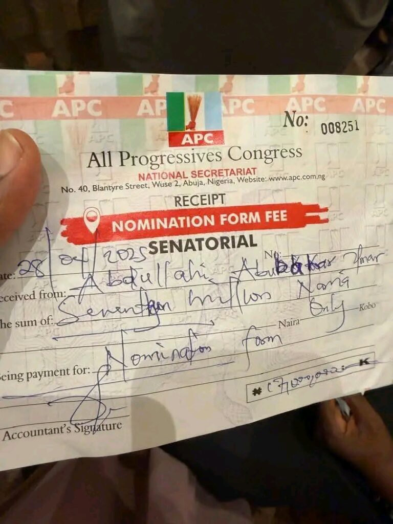 The nomination form, reportedly valued at N20 million, was obtained today amid growing political activities and consultations within the party.