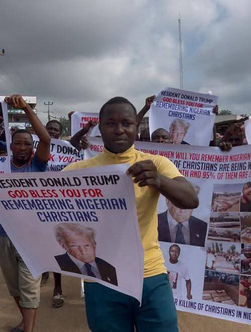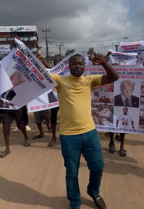A Nigerian evangelist, Evang. Ebube Joseph, on Friday led a street protest in Enugu, calling on former U.S. President Donald Trump to deploy American soldiers to Nigeria over what he described as “the continuous killing of Christians.”