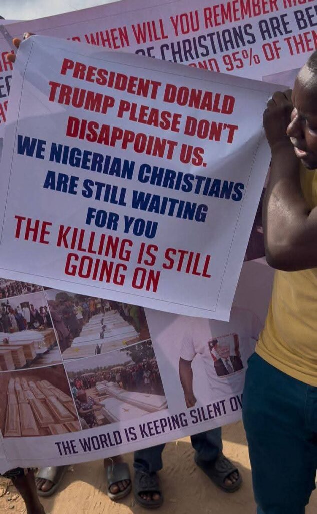 “President Trump, please don’t disappoint us. We Christians are still waiting for American soldiers. The killing is still going on.”