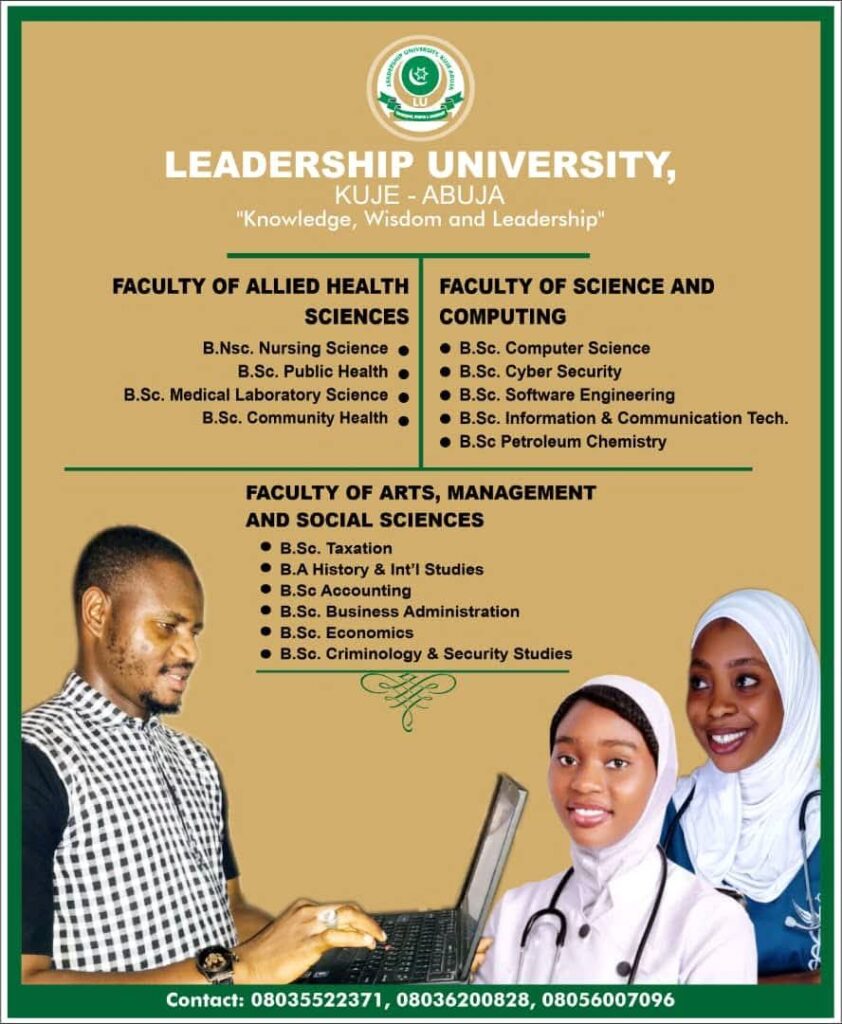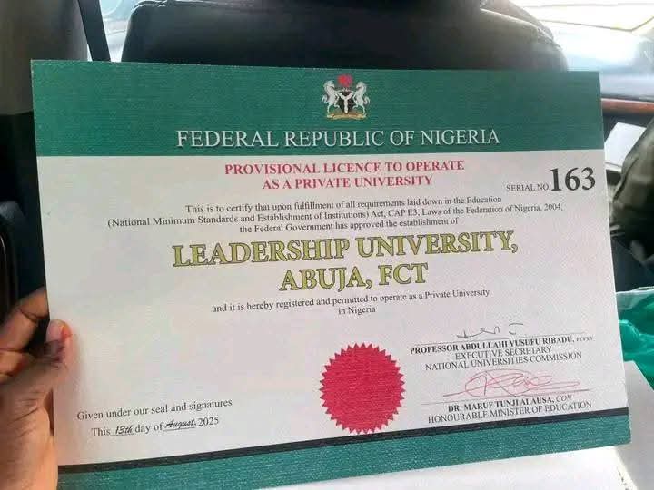 According to reports, Leadership University will begin operations with 15 accredited courses spread across five faculties. The institution aims to provide quality education rooted in leadership, innovation, and community development.