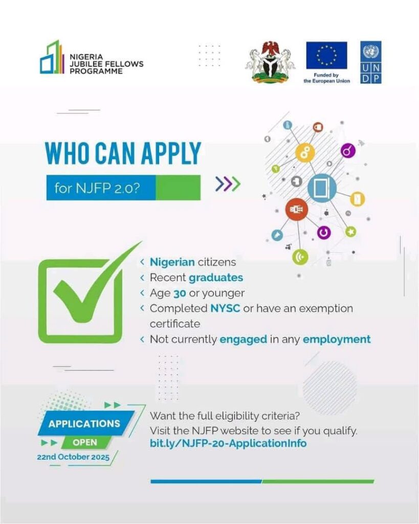 The Nigeria Jubilee Fellows Programme (NJFP), implemented in partnership with the United Nations Development Programme (UNDP), aims to bridge the gap between young graduates and the labor market.