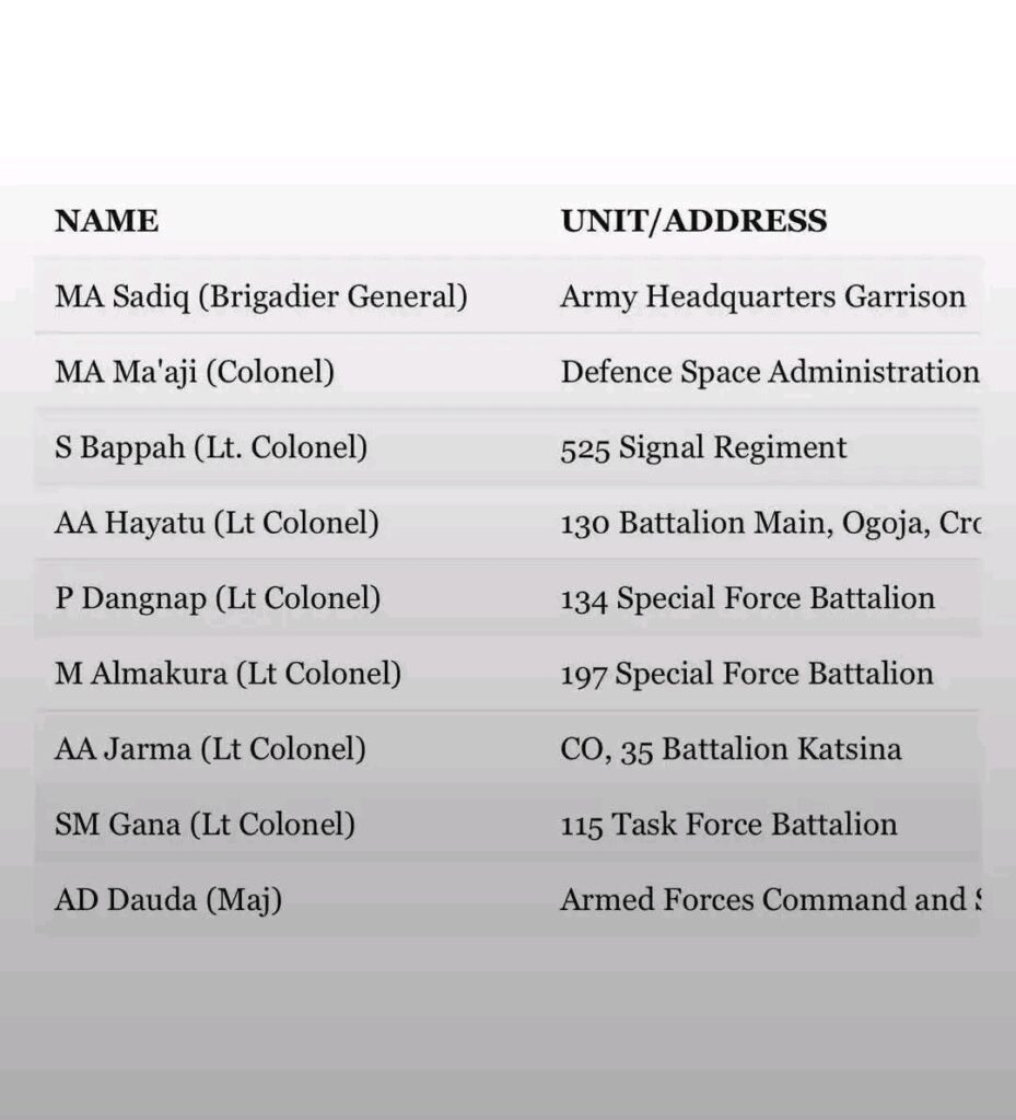 • Full list of the 40 2025 coup d’etat plotters in Nigeria.