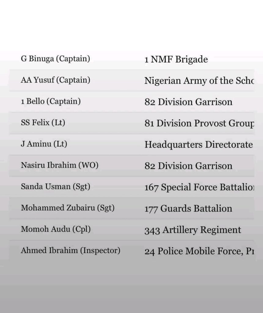 Those named reportedly include senior officers such as brigadier generals, colonels, lieutenant colonels, majors, captains, and non-commissioned officers, alongside civilians accused of playing supporting roles. Security sources disclosed that the alleged plan involved coordination, reconnaissance, mobilisation, and funding, with some suspects believed to have attempted to exploit existing security and socio-economic challenges.