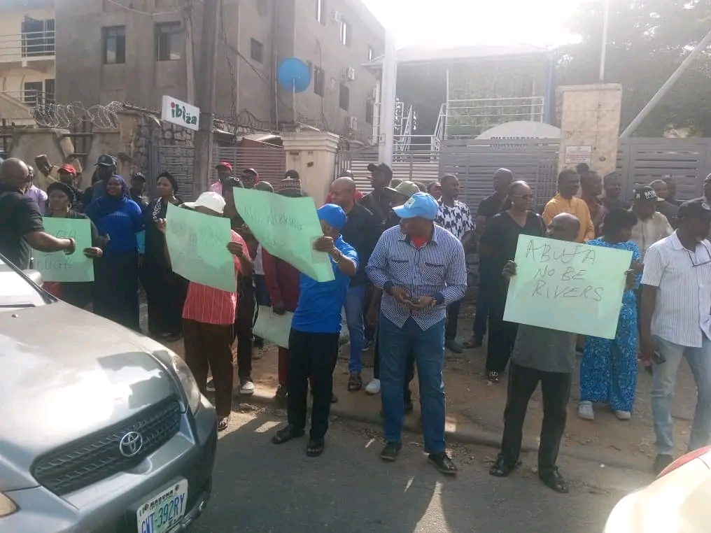 The protest, part of a total and indefinite strike, featured workers carrying placards reading “Wike Must Go”, “Pay Promotion Arrears”, and “Enough Is Enough”. The strike stems from claims of unpaid promotion arrears, poor working conditions, and inadequate work tools.